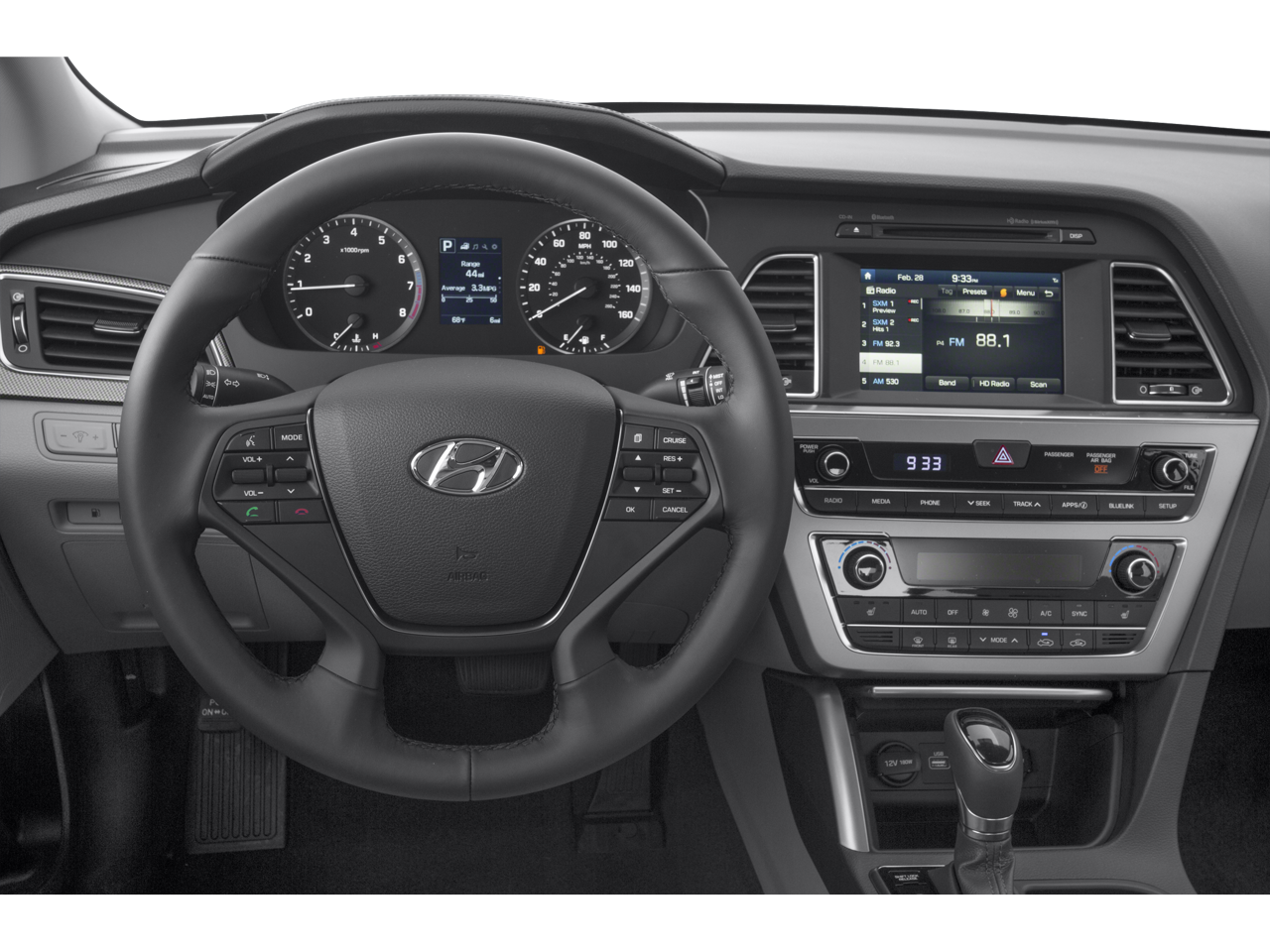 OPTION GROUP 04 Tech Package 04, electroluminescent gauges, Auto-Dimming Interior Mirror w/Homelink/Compass, SiriusXM Travel Link (Complimentary Trial), Radio: AM/FM/SiriusXM/CD/MP3 w/Navigation, iPod/USB and auxiliary inputs, and 7 Dimension speakers (2 front, 2 tweeters, 2 rear, subwoofer, and external amplifier), 8-inch color touchscreen display, and XM NavTraffic, XM NavWeather, XM sports, stock (90-day complimentary subscription) and HD radio technology w/multicasting, 4.2-inch Color LCD Multi-Info Display, OPTION GROUP 03 Premium Package 03, Blind Spot Detection System, includes rear cross-traffic alert, Door Handle Welcome Light, Hands-Free Smart Trunk, hands-free trunk opener, Dual Automatic Temperature Control, Auto Up/Down Front Passenger Window, Leather Wrapped Steering Wheel & Shift Knob, Chrome Exterior Door Handles, Proximity Key Entry w/Push Button Start, Heated Front Sport Seats, multi-adjustable bucket, seatback pockets and 8-way power drivers seat w/2-way power lumbar support, impact reducing front seats and 6-way manual passenger seat (height adjustable).