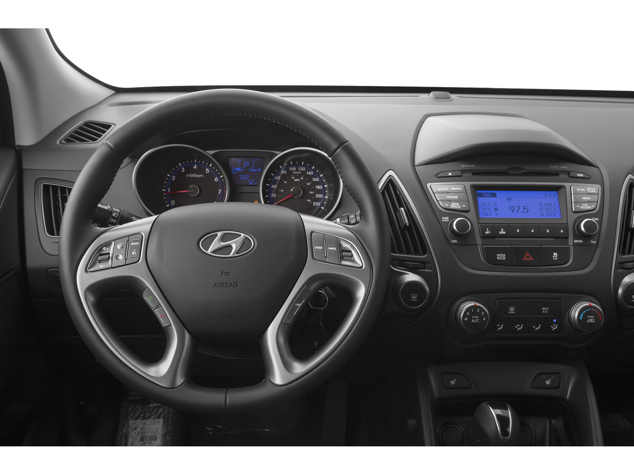 Edmunds.coms review says The 2015 Hyundai Tucson has an unusually stylish cabin, highlighted by a sleek dashboard that complements the exteriors striking lines..