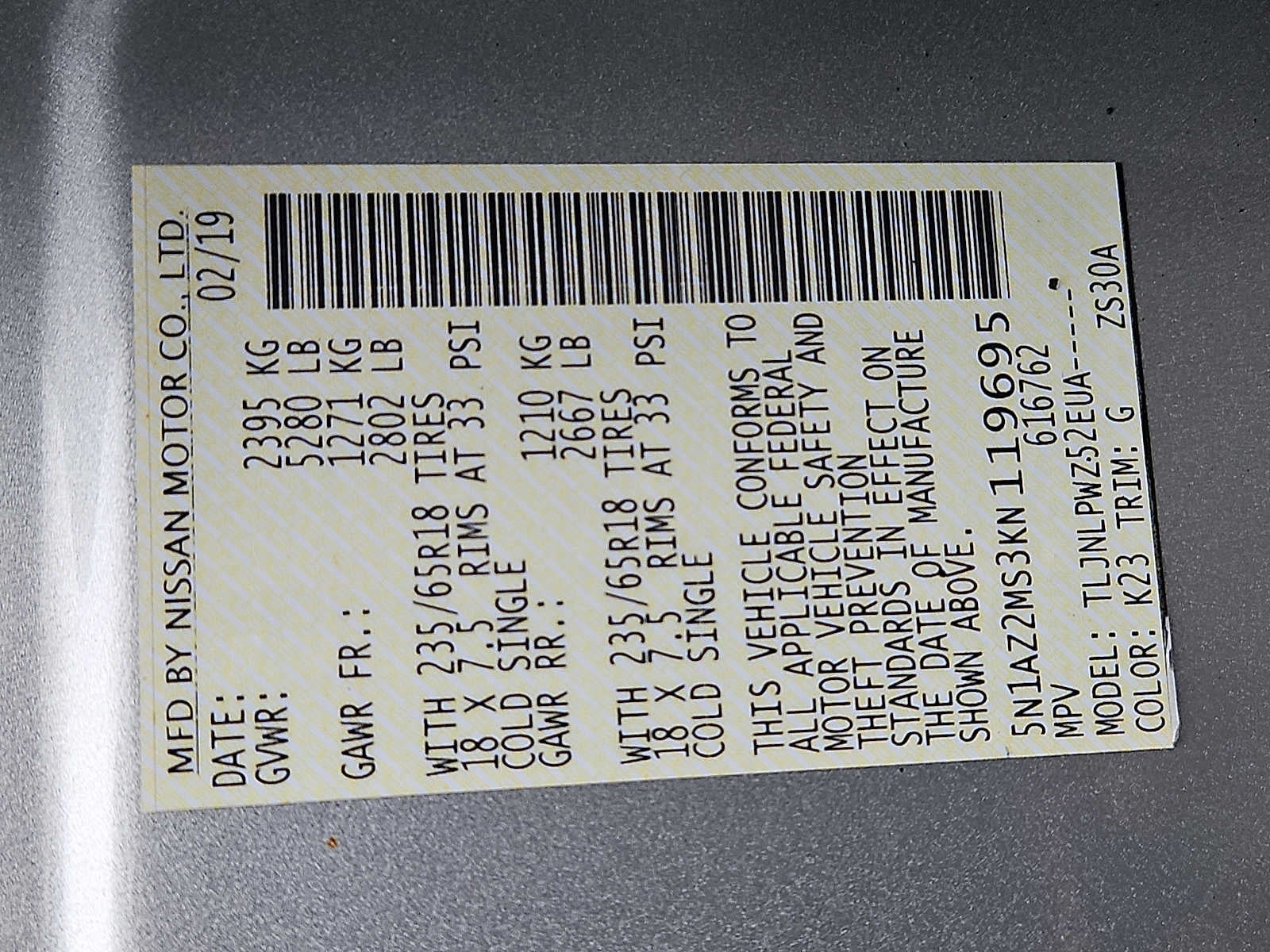 - Tires: 235/65R18 AS