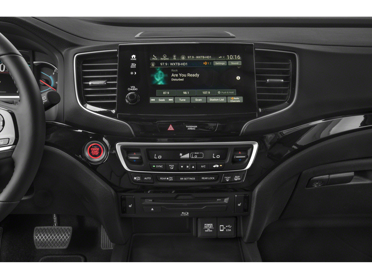 - Radio: 590-Watt Premium Audio System -inc: 10 speakers, subwoofer, Bluetooth® HandsFreeLink and streaming audio, MP3/auxiliary input jack, Radio Data System (RDS), Speed-sensitive Volume Compensation (SVC), 2.5-amp USB charging port (1 port in center console/2 ports on 2nd-row), 8" display audio w/high-resolution touch-screen and customizable feature settings, HondaLink, CabinControl remote compatibility, Apple CarPlay integration, Android Auto integration, SMS text message function, SiriusXM (SiriusXM requires a subscription after any trial period, If you decide to continue your SiriusXM service at the end of your trial subscription, the plan you choose will automatically renew and bill at then-current rates until you call SiriusXM at 1-866-635-2349 to cancel, See our customer agreement for complete terms at www.siriusxm.com, Fees and programming subject to change, Available in the 48 contiguous United States and D.C, SiriusXM and all related marks and logos are trademarks of SiriusXM Radio Inc.), HD radio, 2.5-amp USB smartphone/audio interface (1 port in front console), Honda Satellite-Linked Navigation System w/voice recognition and Honda HD digital traffic, advanced rear entertainment system w/10.2" high-resolution screen, Blu-Ray player, built-in streaming apps and 2 wireless headphones, HondaLink subscription services, Wi-Fi hotspot capability, multi-zone audio and CabinTalk In-Car PA system through headphones and speakers