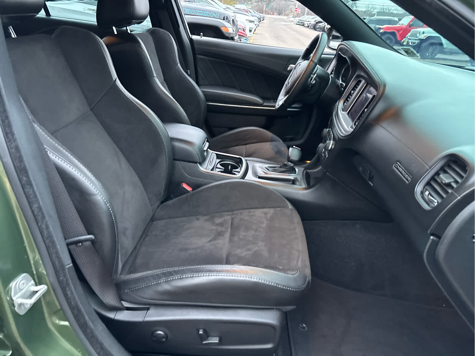 PLUS GROUP Blind Spot Memory/Power/Heat Mirror, Blind Spot & Cross Path Detection, Steering Wheel Mounted Shift Control, Projector LED Fog Lamps, Black-Edged Premium Floormats, Exterior Mirrors Courtesy Lamps, Premium-Stitched Dash Panel, Locking Lug Nuts, Exterior Mirrors w/Heating Element, Auto Dim Exterior Driver Mirror, Wheels: 20 x 8 Machined w/Granite Pocket, Driver & Passenger Lower LED Lamps, Heated Steering Wheel, Performance Steering Wheel, Deluxe Security Alarm, Rhombi 2-Pc Wheel Center Cap, Auto Adjust In Reverse Exterior Mirrors, Front & Rear LED Map Pockets, Front Overhead LED Lighting, ENGINE: 3.6L V6 24V VVT (STD). Dodge GT with F8 Green exterior and Black interior features a V6 Cylinder Engine with 300 HP at 6350 RPM*.
