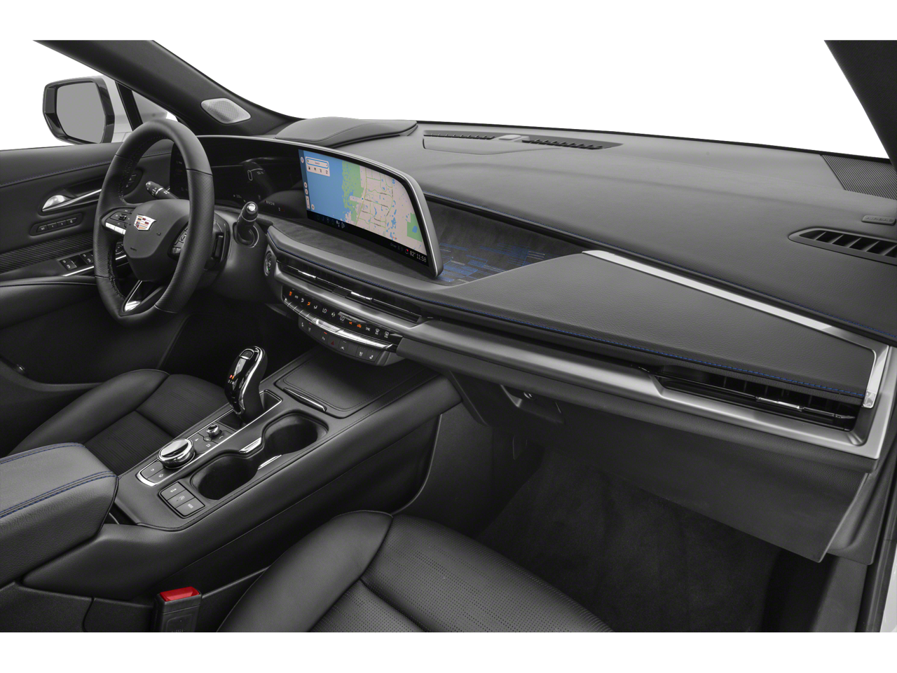Navigation Cadillac AWD Sport with Stellar Black Metallic exterior and Jet Black with Santorini Blue accents interior features a 4 Cylinder Engine with 235 HP at 5000 RPM*.